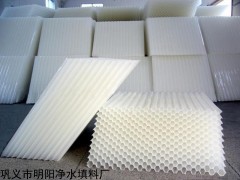我廠生產的六角形蜂窩填料有斜管和直管兩種形式。材質有聚丙烯、聚氯乙稀、玻璃鋼和乙丙共聚四種。