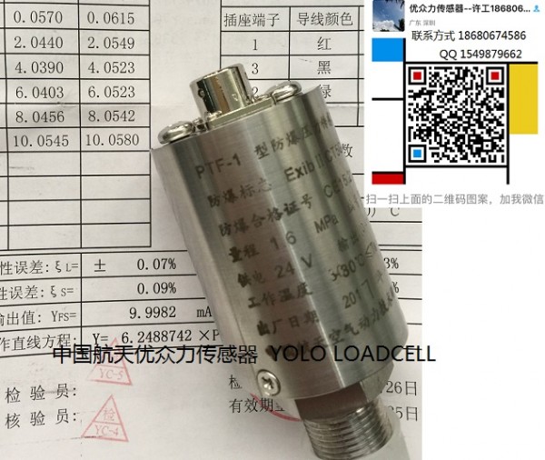 深圳市優眾力科技有限公司提供PTF-1-20MPA防爆壓力變送器。優眾力傳感器品牌YOLO-LOADCELL,提供完善的售后服務。各類壓力傳感器、測力傳感器,微型測力傳感器,輪輻壓力傳感器,柱式拉壓力傳感器,各類配料稱稱重傳感器,各種稱重系統稱重傳感器模塊,量大優惠,歡迎來電咨詢;