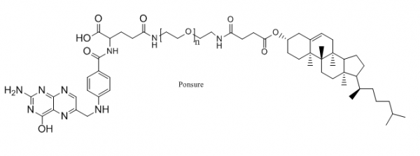 芃碩生物(Ponsure)的葉酸聚乙二醇膽固醇(FA-PEG-CLS)可以用來修飾蛋白質、多肽和其他帶有活性基團的材料。葉酸(-FA)具有高親和力的葉酸受體,可用于靶向藥物傳遞的細胞膜受體。膽固醇(CLS):可用于使脂質體,以提高封裝藥物的循環時間。它們也可用于非病毒轉染試劑。具有水溶性和脂溶性。