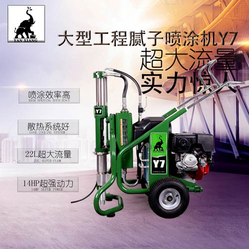 Y7是巖象公司開發的一款適用于膩子、乳膠漆、涂料等材料的液壓式高壓無氣噴涂設備,
