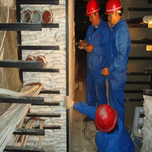 電纜豎井,用阻火網、阻火板或鐵板做支墊,將防火包平鋪于墊上,壘成隔層,電纜隧道和電纜溝根據電纜隧道和電纜豎井的有關間距規定,在需要設置隔墻外,將防火包壘成防火墻即可。必要時可用角鋼做成支架以方便封堵。