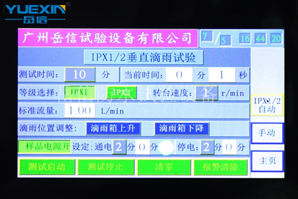 8. 滴雨板自動升降,噴嘴位于被測試物高點200mm處時自動停止(通過光電開關檢測)。