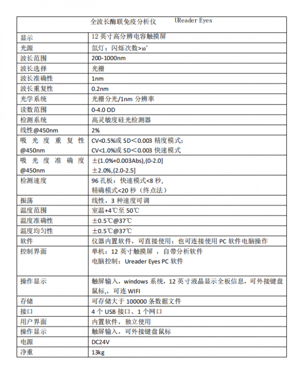 全波長酶聯免疫分析儀 核酸蛋白定量檢測酶聯儀技術參數: