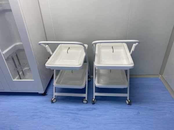 內鏡轉運車其周轉箱材料亦由制造清洗槽臺面的高分子復合材料獨立開模制成,車體由不銹鋼噴塑而成,具有耐腐蝕、不沾水、車行順暢、取放方便等優點。盆內內鏡存放導航隔條使污染部位和非污染部位分離。多層設計使客戶在使用過程中可將清潔和污染的內鏡分層標明后置放,避免交叉感染等功能