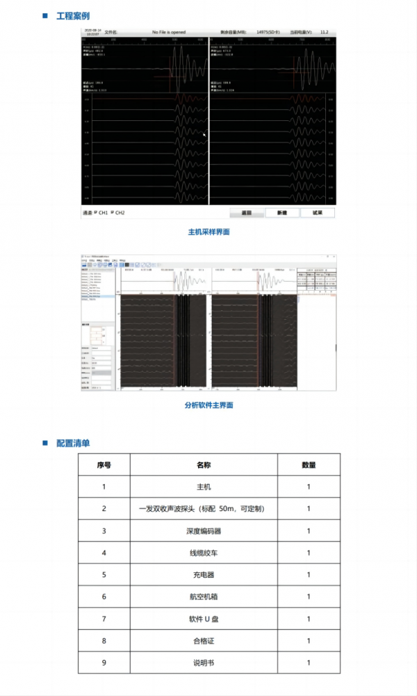 采用12.1寸真彩液晶顯示屏,現(xiàn)場(chǎng)可同時(shí)測(cè)試波形、波列、波速、波幅等信息;深度自動(dòng)測(cè)量,一次提升自動(dòng)完成測(cè)試過(guò)程,無(wú)須人工干預(yù),簡(jiǎn)單高效。