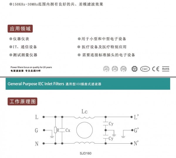 -- SJD160系列采用一級共模濾波設(shè)計(jì),普通型濾波器